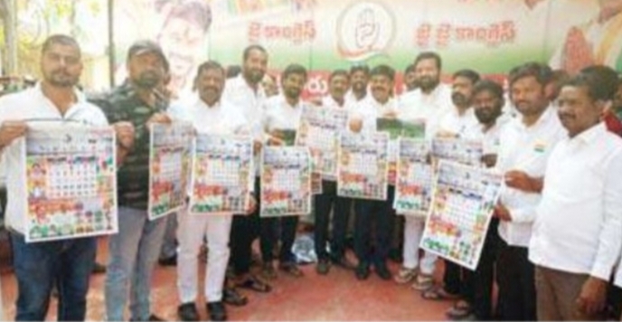 Armoor, January 26 (Gatla News): Armoor Congress constituency in-charge, Proddutur Vinay Kumar Reddy, unveiled the New Year 2026 calendar designed by the Janam Sakshi daily newspaper. The calendar was launched on Monday at PVR Bhavan in Armoor town, in the presence of Janam Sakshi Armoor division journalist Charan Goud and Congress leaders. Speaking on the occasion, he praised Janam Sakshi, stating that it is a popular newspaper that has been in the media field for the past 20 years, known for its courageous reporting. He mentioned that the newspaper brings people’s problems to the attention of the government and works towards their resolution. Present at the event were Armoor Agricultural Market Committee Chairman and Town President Saibaba Goud, BC Cell Town President Dondi Ramana, Town Youth Congress President Vijay Agarwal, and Congress leaders Pandit Prem, Sadak Pramod, SK Bablu, Aljapur Kiran, and others.