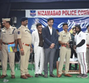Nizamabad, January 13 (Gatla News): Police Commissioner P. Sai Chaitanya appealed to the public to follow traffic rules and save lives. Speaking at the National Road Safety Month celebrations held at the Rajiv Gandhi Auditorium in the district center on Tuesday, he addressed the issue of controlling road accidents. He expressed concern that more people died in road accidents in 2020-21 than those who died due to COVID-19. He said that while people were safe during the COVID-19 pandemic by wearing masks, many are losing their lives due to negligence while driving, by not wearing seat belts and helmets. He stated that while 200 people died due to Corona in the last two years, 250 people died in road accidents in 2025. He advised everyone to drive safely to ensure the safety of their families. He reminded everyone that not a single road accident occurred in Finland last year. He suggested that the special program called ‘Arrive Alive’, launched by the State Director General of Police to control accidents, should be carried forward like a sacred mission. The Police Commissioner appealed to everyone to strictly follow three principles while driving. Everyone should follow traffic rules, especially young people should avoid speeding and drive slowly, refrain from using mobile phones while driving, and wear helmets mandatorily, they emphasized. On this occasion, international boxing player and Arjuna Award recipient Husamuddin spoke, mentioning that his family lost a member in a road accident. Dr. Ramaneshwar, a neurosurgeon from Vishnu Super Specialty Hospital, advised everyone to drive safely, wear helmets, and avoid using cell phones while driving to reach their destinations safely. Subsequently, a road safety pledge was administered, and T-shirts and placards with slogans related to traffic rules were launched. 100 helmets were distributed free of charge to motorists courtesy of Vishnu Super Specialty Hospitals. The event was attended by Nizamabad Additional DCP (Admin) B. Baswareddy, District Transport Officer Uma Maheshwar, RTC Depot Manager B.S. Anand, IMA President Dr. A. Vishal, Neurosurgeon Dr. Ramaneshwar, Nizamabad ACP Raja Venkat Reddy, Traffic ACP Mastan Ali, Diggi workers, Ambulance Association, Auto Associations, Cab Drivers Associations, business owners, and others.