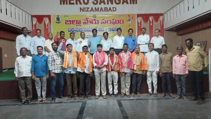 Nizamabad, January 12(Gatla News): As part of the Nizamabad District Meru Association election schedule, after the withdrawal deadline on Monday, all the remaining candidates were elected unanimously. The election officer, Sangha Satyavrat, announced in a statement that the following individuals have been unanimously elected: Som Hanmanth Rao (Nizamabad) as District President, Kottur Chandrakant (Nizamabad) and Kottur Srinivas (Bodhan) as Vice-Presidents, Darbashtu Shyam (Armoor) as General Secretary, Gatla Narendra (Nizamabad) and Talla Narashimlu (Retired SI, Nizamabad) as Joint Secretaries, and Kokku Rajeshwar (Sirikonda) as Treasurer.
