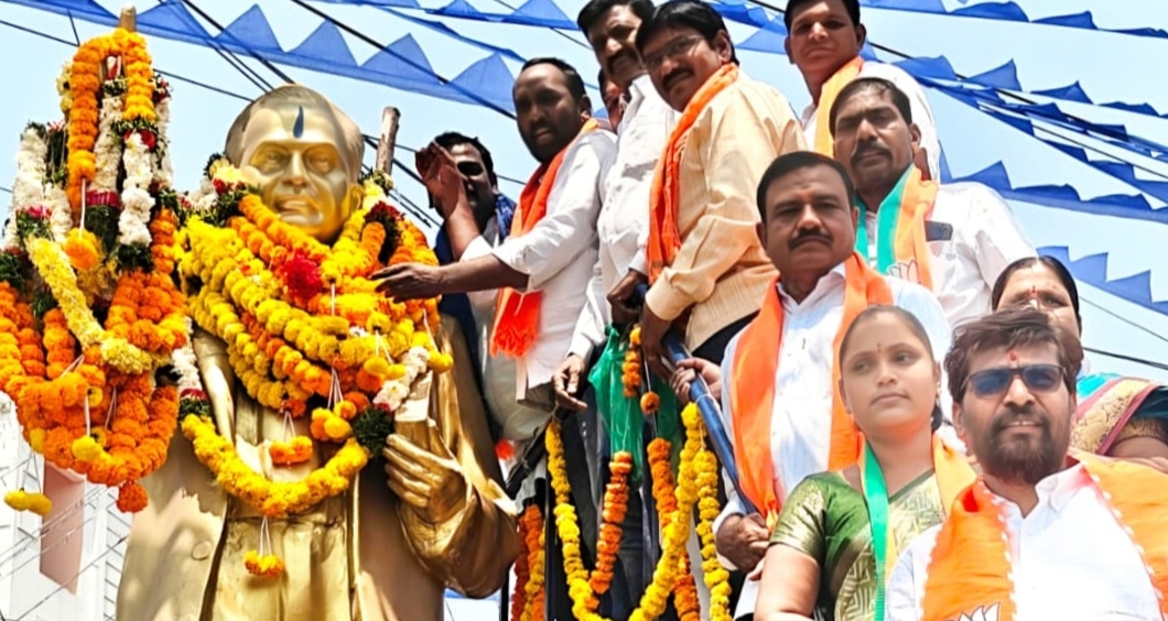 Banswada, April 14 (Gatla News): On the occasion of Ambedkar Jayanti, the Banswada branch of the Bharatiya Janata Party (BJP) organized a grand tribute to the architect of the Indian Constitution and Bharat Ratna recipient, Dr. B.R. Ambedkar. As part of the celebrations, party members garlanded the statue of Dr. Ambedkar and paid their solemn respects to the great visionary. Speaking at the event, BJP Town President Kondala Gangareddy stated that the implementation of the Constitution drafted by Dr. B.R. Ambedkar ensures that justice is delivered to the poor and middle-class sections of society today. He urged everyone to uphold Ambedkar’s ideals, to follow in his footsteps, and called upon the youth to look to Ambedkar as a role model. The event was attended by BJP District General Secretary Srinivas Reddy, District Vice President Chidura Sailu, District Secretary Shankar Goud, BJP Municipal Councilor Gajjala Mahesh, BJP Town General Secretary Umesh, along with party leaders Srinivas, Lakshminarayana, Cheekatla Raju, Kondani Gangaram, Chandrashekhar Goud, Shankar, Lakshmi, Mamata, Bhumesh, Sai Reddy, and Venkat, as well as members of the public.