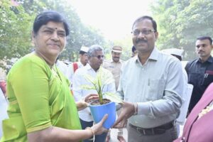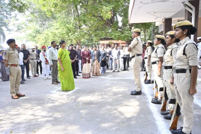 Nizamabad, November 29 (Gatla News): State High Court Judge Justice T. Madhavi Devi was accorded a grand welcome by the district authorities on her arrival in Nizamabad on Saturday. At the guest house of the local roads and buildings department, the High Court judge, District Judge G.V.N. Bharathalakshmi, Collector T. Vinay Krishna Reddy, Police Commissioner Sai Chaitanya, district officials of the respective departments, lawyers and representatives of the Bar Association met and welcomed her with flowers and plants. Later, the High Court judge met the District Judge, Collector and Police Commissioner for a short time at the guest house. Earlier, the High Court judge received a salute from the police.