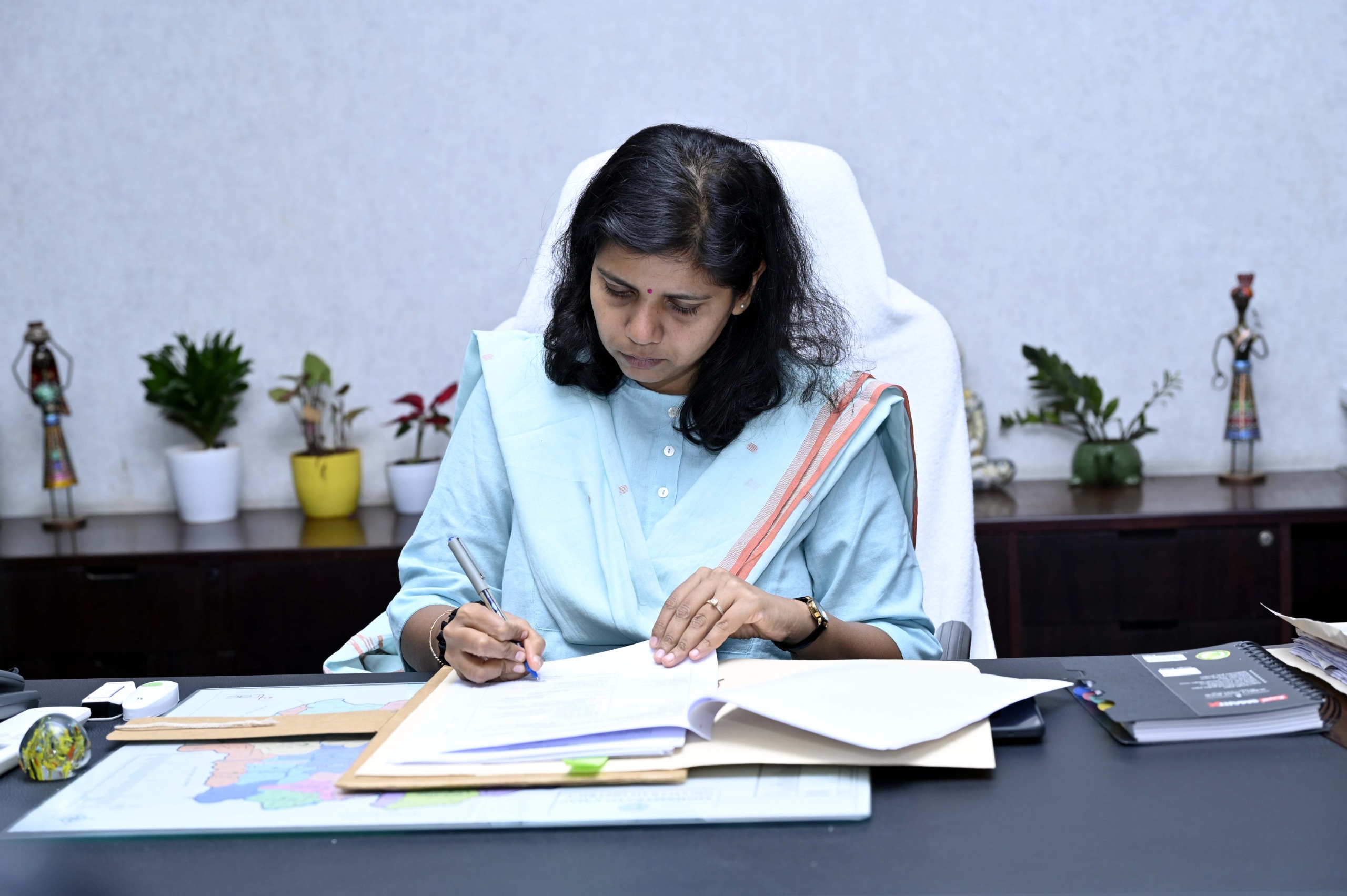The Collector proceeded directly to her chamber and officially took charge. On the occasion of assuming office, several departmental officials met the Collector, offered bouquets, and introduced themselves. Collectorate AO Prashanth and leaders of employee unions also welcomed the Collector by presenting her with potted plants.
