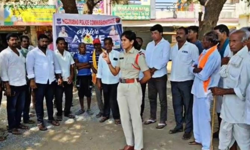 Balkonda, March 25 (Gatla News): Mendora SI Suhasini conducted an awareness session for motorists regarding road safety as part of the “Arrive Alive” campaign, held near the Vivekananda statue in the Mendora Mandal headquarters. Speaking on the occasion, she emphasized that preventing road accidents is the responsibility of every individual. She advised two-wheeler riders to strictly wear helmets and urged four-wheeler drivers to invariably use seat belts. She stated that overtaking on the road should be done from the right side, warning against overtaking from the left, which could lead to accidents. She further asserted that driving under the influence of alcohol would inevitably result in a fine of ₹10,000 or imprisonment. She strictly instructed that vehicles must not be handed over to minors under any circumstances. She also pointed out that speeding and negligent driving are primary causes of accidents. Local Sarpanch Buttadi Pramod Kumar, Deputy Sarpanch Mittapalli Rajeshwar, police personnel, and motorists participated in this program.