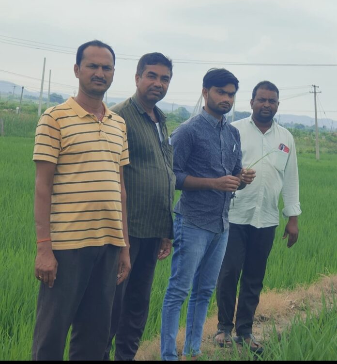 With the month approaching, Mandal Agriculture Officer Harish inspected the paddy crops at the field level on Friday. Speaking at a press conference organized later, he revealed that stem borer, palm pest and fly agaric were observed while inspecting the paddy crop. He suggested that if farmers take preventive measures in time, they can save the paddy crop. He said that the impact on the paddy crop can be reduced. He said that farmers should use medicines as prescribed to prevent pests in the initial stage. First, if farmers notice that the rice crop is infected with stem borer, they should spray Carpoferon 3G 10 kg per acre for prevention. Second, they should spray Chloranro Niliprol 0.4G 4 kg per acre. Third, they should spray Cartop Hydrochloride 48.8 kg per acre. If the palm pest is observed, they should use Coripiriphos 320 ml or Profenapos 400 ml. Similarly, if the rice is attacked by flies, they should spray Chloripiriphos 320 ml per acre. They informed the farmers that if every farmer pays attention to the rice crop, observes the pests in the crop and takes preventive measures at the right time, not only can the crop be saved but also a good yield can be achieved. He clarified that if the agricultural staff does not respond over the phone in any case, they can directly come to the Agriculture Department office and get advice. He reminded that in the past, when various types of crops were affected by pests, the farmers faced many difficulties because the officials were not available to provide advice and suggestions to the farmers for preventive measures. Harish assured the farmers that the Agriculture Department will be ready to provide services to the farmers at any time and will provide appropriate advice on preventive measures for any problem. Farmers Mahipal, Raj Bharat, Chapala Venkati, and others participated in this program.