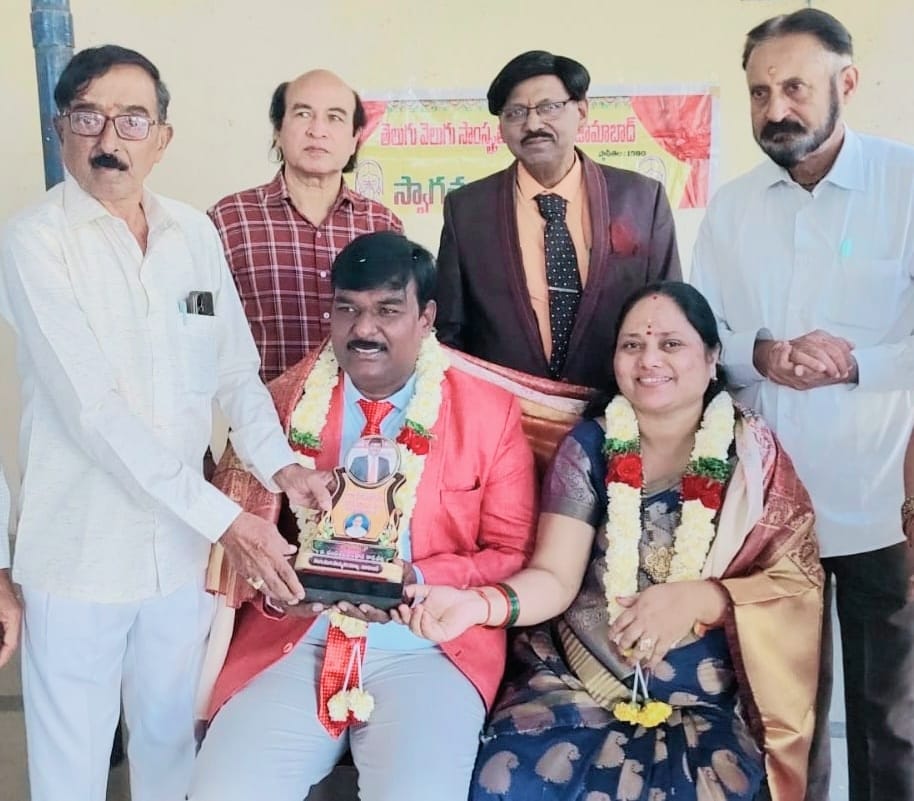 Nizamabad, November 26 (Gatla News): Retired principal of Nizamabad district center and general secretary of Telugu Velugu Cultural Association Bokkasam Chandrasekhar Rao is honoring those who have rendered distinguished services in various fields for the past four decades. Renowned motivational speaker and psychologist Thirunagari Srihari has been awarded the “Telugu Velugu Lifetime Achievement Award” for the year 2025. Renowned poet and founder president of Koravi Goparaju Sahitya Kultura Sanstha Kankanala Rajeshwar told reporters on Wednesday that Thirunagari Srihari and his wife were felicitated at the Bala Bhavan in the district center. Speaking on this auspicious occasion, awardee Thirunagari Srihari said that this award has increased his responsibility and that he will provide inspiring services to many more students. Prominent advocate Raj Kumar Subedar, Jadu Yugandhar Ranganath, Bala Bhavan Prabhakar, Ashtavadhani Dr. Ganapathi Ashok Sharma and others participated in the program.