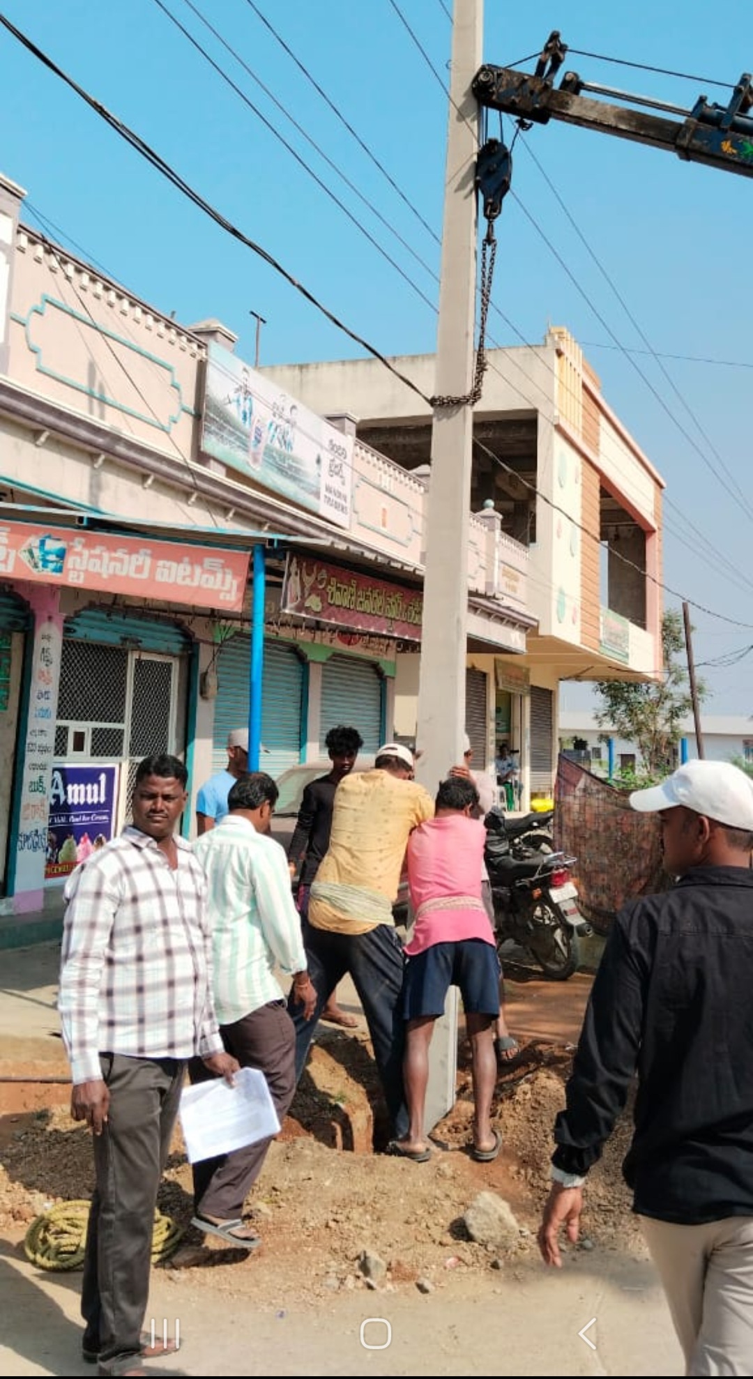 Mortad, February 19 (Gatla News): The way to turn Mortad into a model village without power interruption is the way, says Lineman Ramaswamy. He said that they are removing the iron poles and installing cement poles. To avoid power interruption, they are installing new electricity poles in place of the poles that have rusted and deteriorated. They said that they will install new ones in place of the iron electricity poles that have deteriorated over the past few years and turn it into a medal village. Electricity consumers in the respective streets are requested to cooperate with the electricity department staff. Contractor Naveen’s staff participated in this program.