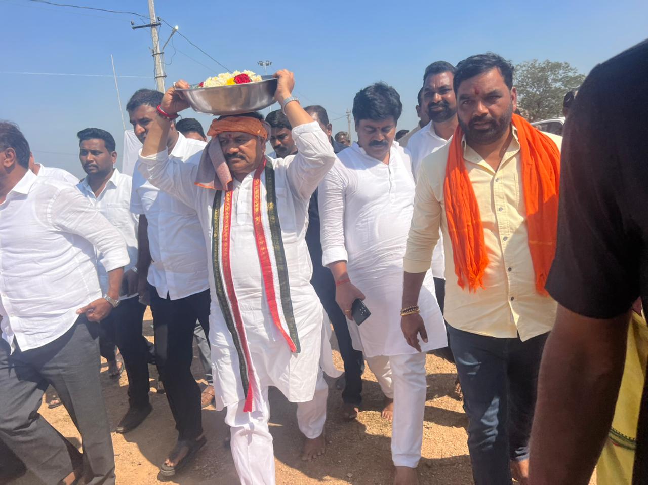Bheemgal, November 23 (Gatla News): Telangana State Congress Party President MLC Bomma Mahesh Kumar Goud visited Chokkayyagutta Sri Venkateswara Swamy in Bheemgal town center. Speaking on the occasion, he assured that he would do his best for the development of Chokkayyagutta in every way. Mineral Corporation Chairman Iravatri Anil Kumar, Balkonda Congress Party In-charge Mutyala Sunil Kumar, Armur Congress Party In-charge Podduturi Vinay Reddy, Armur Market Committee Chairman Sai Baba Goud, Congress Party Mandal President Bhodire Swamy Bheemgal former MPP Kanne Surender, Chokkayyagutta Temple Committee members and others participated in the program.