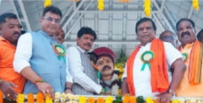 Nizamabad,October12(Gatla News): MLA Dhanpal Suryanarayana said that everyone should follow in the footsteps of Sant Shiromani Sadguru Sri Nandev Maharaj. He participated in the installation ceremony of Sant Shiromani Sadguru Sri Nandev Maharaj at the Mahaveerula Pragana in Vinayak Nagar on Sunday and unveiled the statue. Speaking on the occasion, the MLA said that Nandev Maharaj was a great man who fought for the unity of the Meru castes 700 years ago. He said that his teachings will inspire the present generation as well. He expressed happiness over the participation of Meru castes from various districts across the state in the installation ceremony. Polkam Gangakishan, District General Secretary of BC Welfare Association, Eshwar Namdev Rao, District Meru Association President Soma Hanmantha Rao, Kottur Devadas- General Secretary, Kottur Chandrakanth Treasurer, Nagara Meru Association, Mantena Dasharath – President, Darshastu Gangadhar General Secretary, Yennu Sudarshan – Treasurer and members of Meru Association participated in this program.